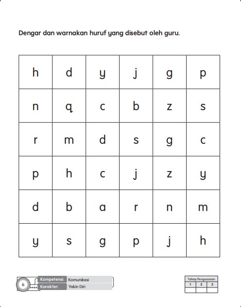 Terdapat empat kemahiran yang perlu dikuasai dalam pembelajaran bahasa ini. Antaranya ialah mendengar,bertutur, membaca dan menulis. Pada peringkat awal, murid-murid dilatih untuk memegang pensel dengan betul. Latihan menggerakkan tangan mengikut corak dapat melembutkan tangan murid untik menulis abjad.