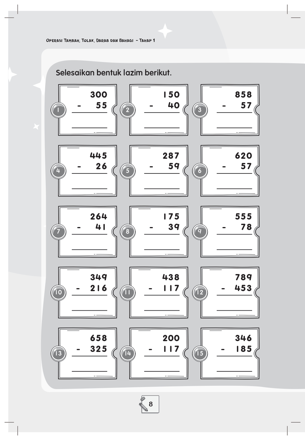 Operasi Tambah, Tolak, Darab dan Bahagi ialah buku latihan Matematik yang merangkumi soalan-soalan pemantapan awal umum bagi silibus Tahun 1, Tahun 2 dan Tahun 3. Jadi, buku ini sangat sesuai untuk ulang kaji murid Tahun 3 hingga Tahun 6. Kandungan topik yang disediakan merupakan asas yang mesti dikuasai murid sebelum mempelajari bab seterusnya. Bilangan digit yang digunakan bermula satu hingga empat digit sehingga angka 10 000, sesuai silibus pembelajaran bagi sehingga Tahun 3.