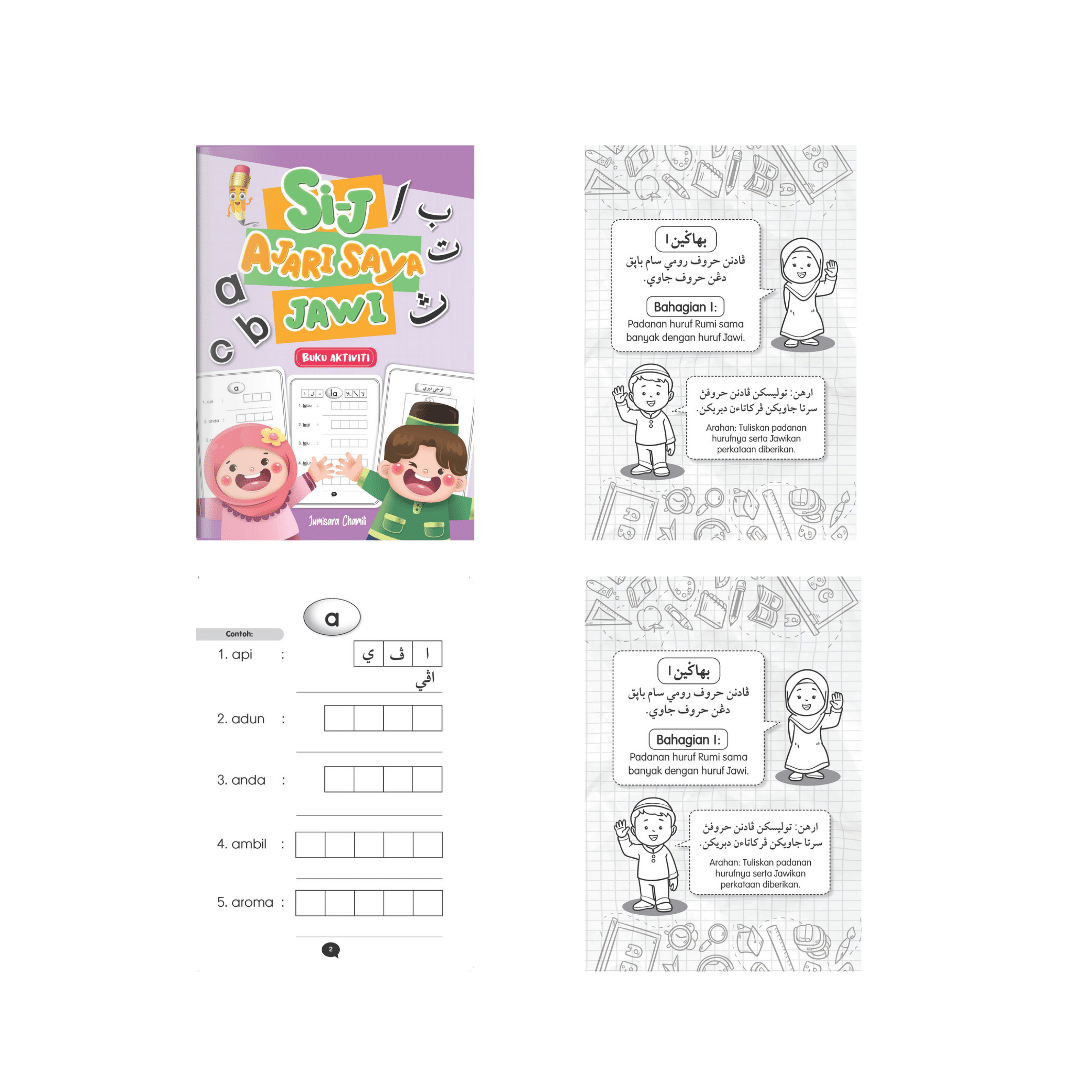 Si-J Ajari Saya Jawi merupakan set untuk menguasai tulisan Jawi dengan lebih cepat dan mudah. Set ini mengandungi buku aktiviti, Kad Alat Bantu Mengajar (ABM) dan buku cerita.