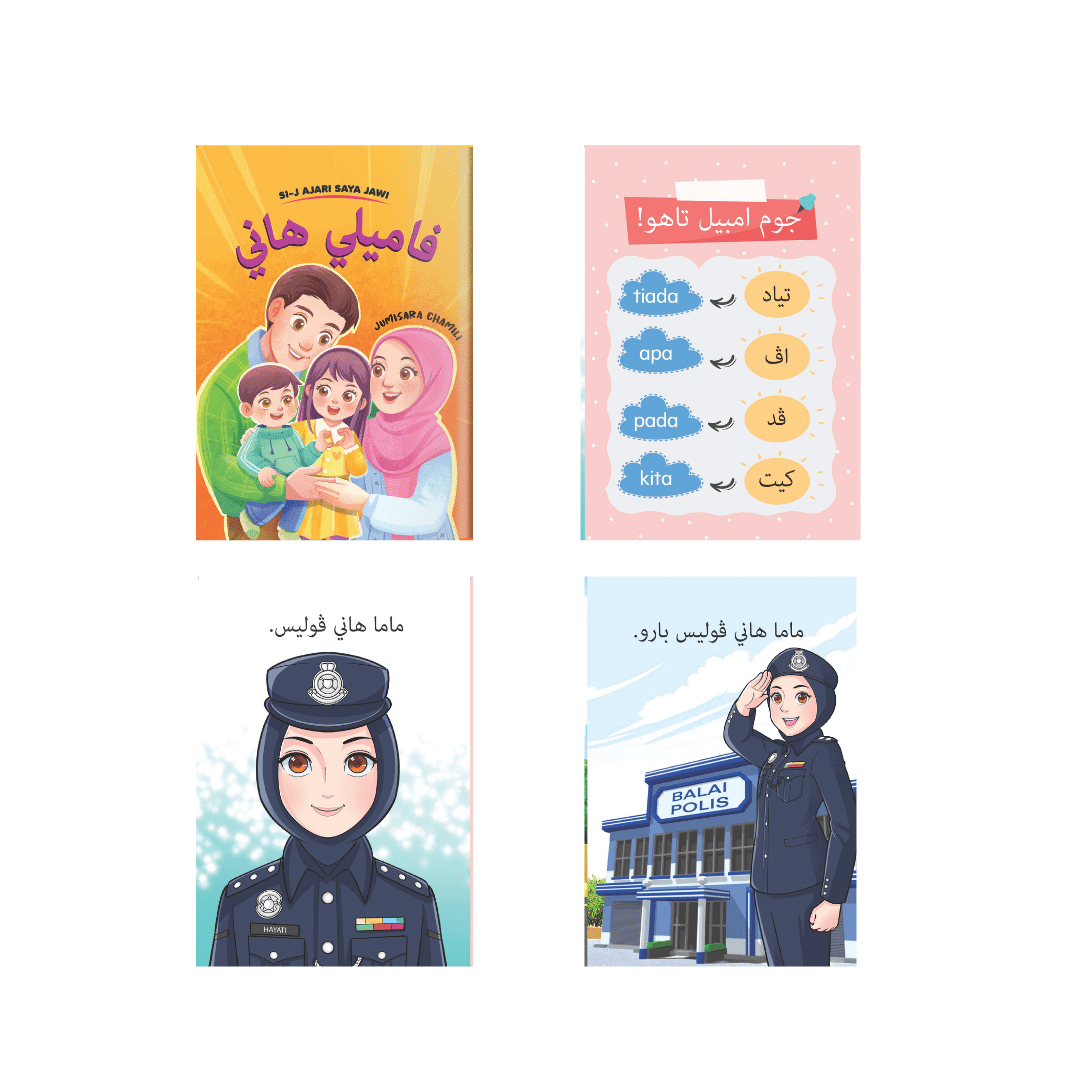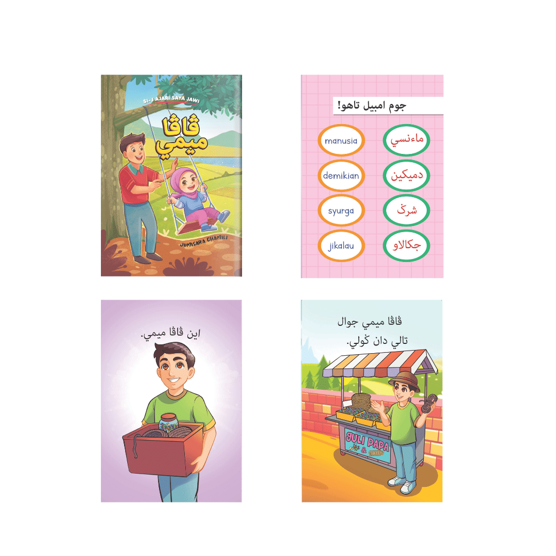 Buku cerita dalam tulisan Jawi ini boleh memantapkan lagi penguasaan tulisan Jawi dalam kalangan pelajar. Terdapat lima tajuk yang berbeza yang boleh menambah kosa kata pelajar dalam tulisan Jawi.