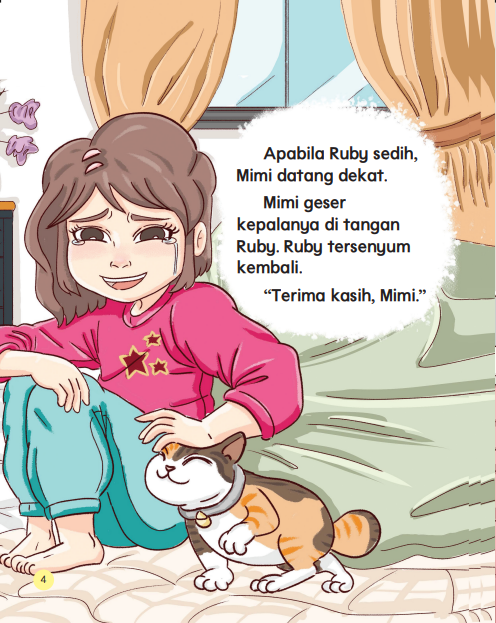 Ruby sangat sayang akan kucingnya, Mimi. Mereka bermain, ketawa dan saling berpelukan setiap hari. Apabila Mimi sakit, Ruby menunjukkan kasih sayangnya kepada Mimi. Ikuti kisah persahabatan Ruby dan Mimi yang tidak dapat dipisahkan!